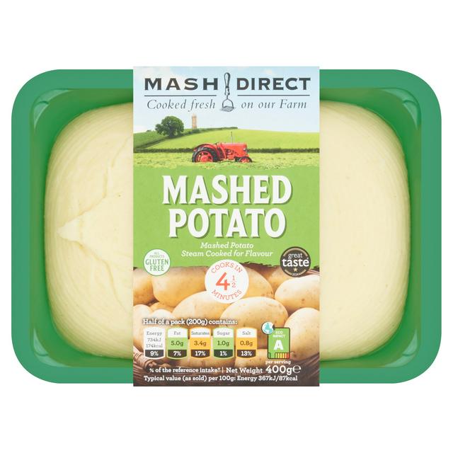 Enjoy the convenience of farm-fresh mashed potatoes ready in moments with this 400g pack from Mash Direct. These potatoes are prepared by being steam cooked directly on the farm, ensuring the natural flavour is locked in for a quality taste experience. They offer a satisfying and very easy-to-prepare accompaniment for your weeknight main dishes.