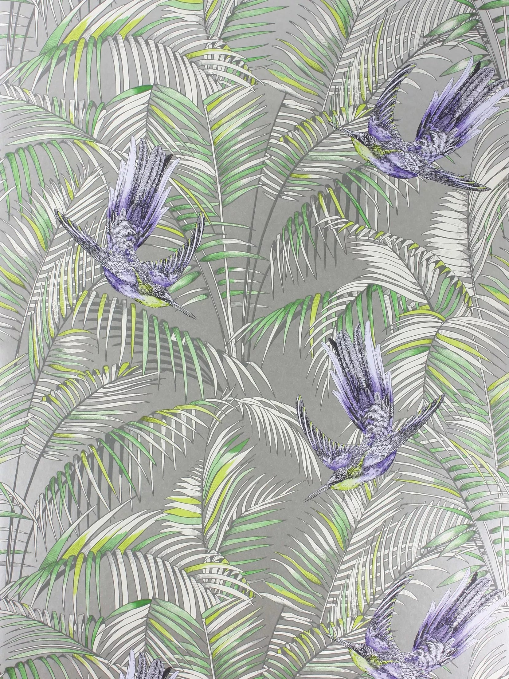 An exotic bird with extravagant plumage darting between rich foliage - designed by Matthew Williamson.