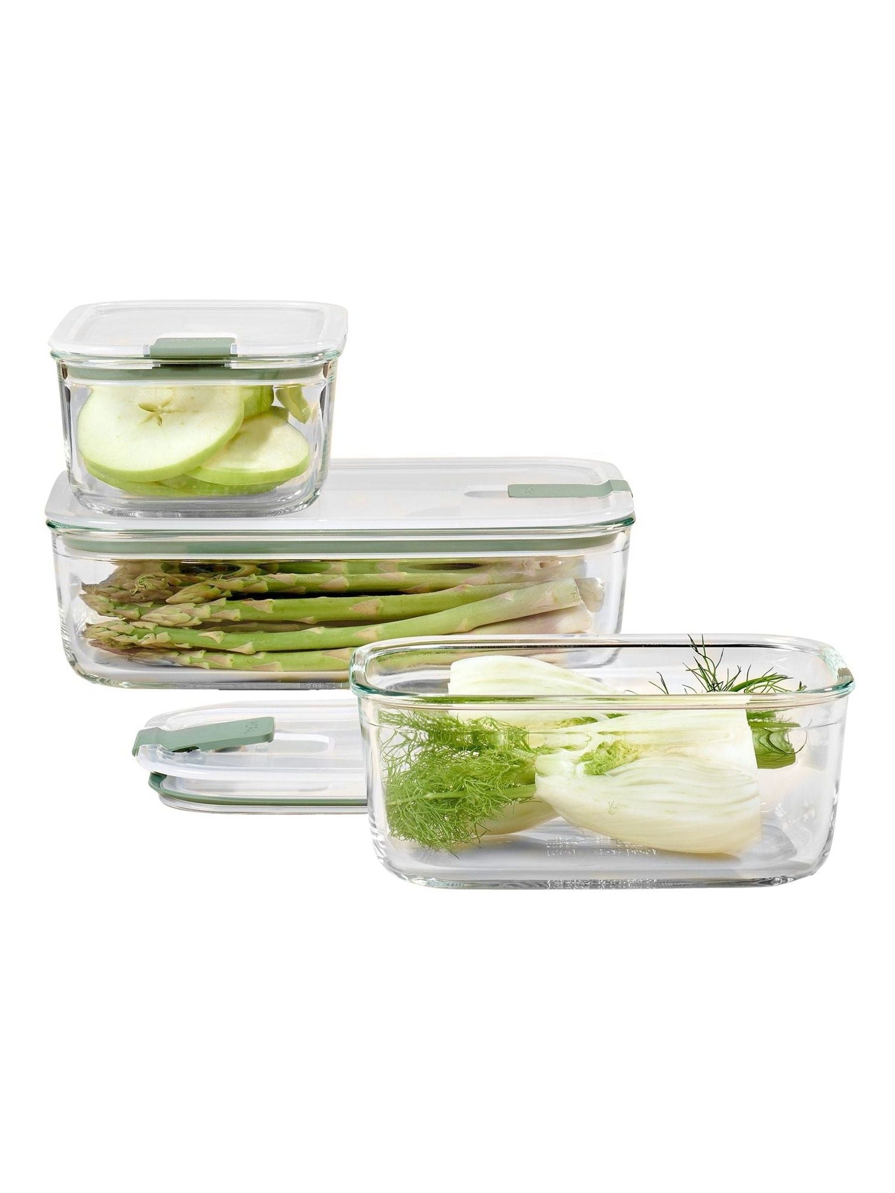 The glass oven dish with lid EasyClip is perfect for storing your leftovers. With one click the glass dish closes air and aromatight and you can store the best meals in your fridge or freezer. Click, seal and store! Thanks to the design of this storage champion you will have a super sleek organisation in your fridge or freezer. And because of the transparant lid and dish you will see the content in one glance. Place the dish in the oven without the lid. Or heat up your meal in the microwave. The glass dish including the handy lid is suitable for the microwave. Just open the clip with the unique steam vent. Size: ONE.