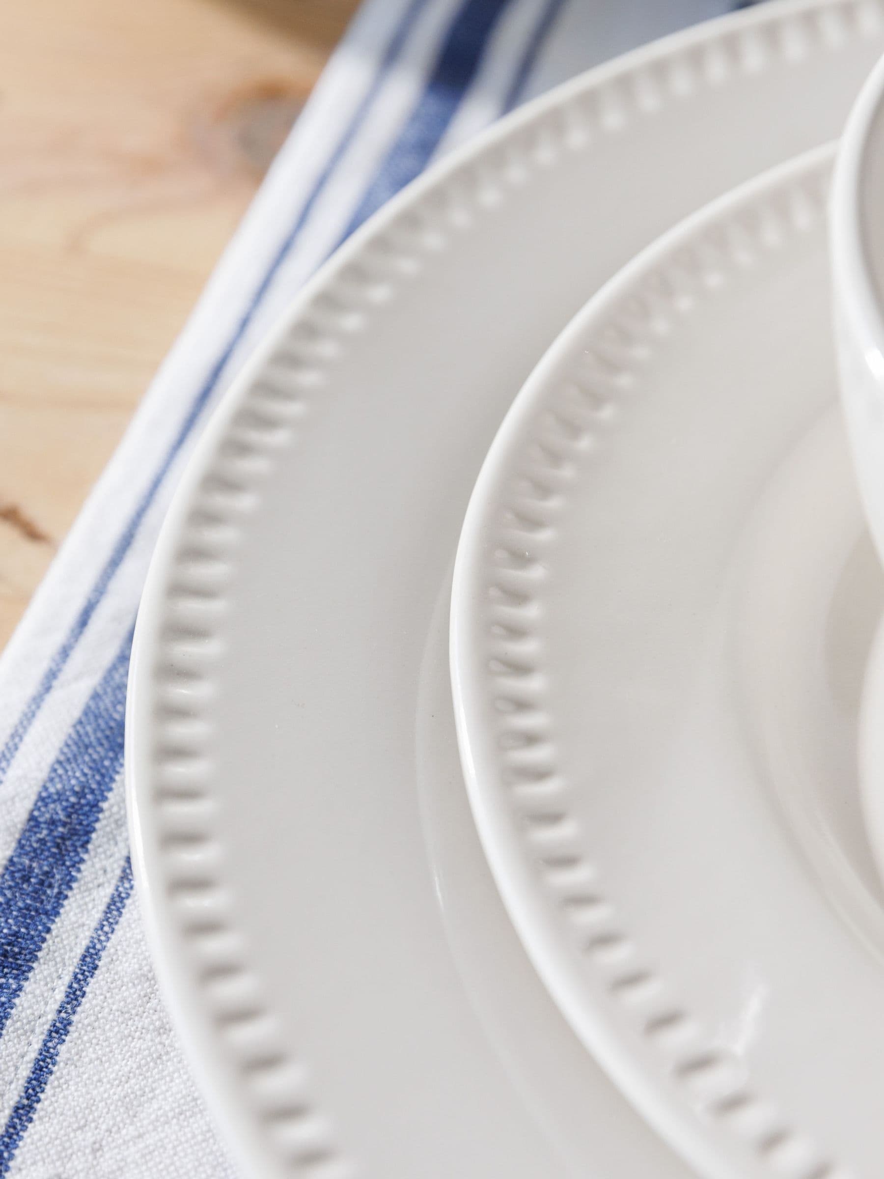 Debossed with a textured and dimpled pattern, featuring a cream glaze for a classic look.