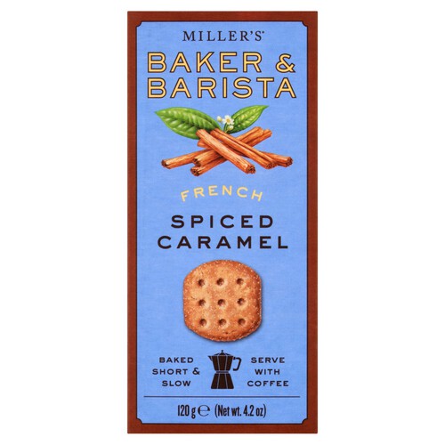 Millers Baker crafts these biscuits using a 'baking short & slow' philosophy in traditional rack ovens. This method ensures the dough settles gently, developing a unique short texture throughout the eating experience. The flavour profile features notes of French dark caramel combined with butter and brown sugars.