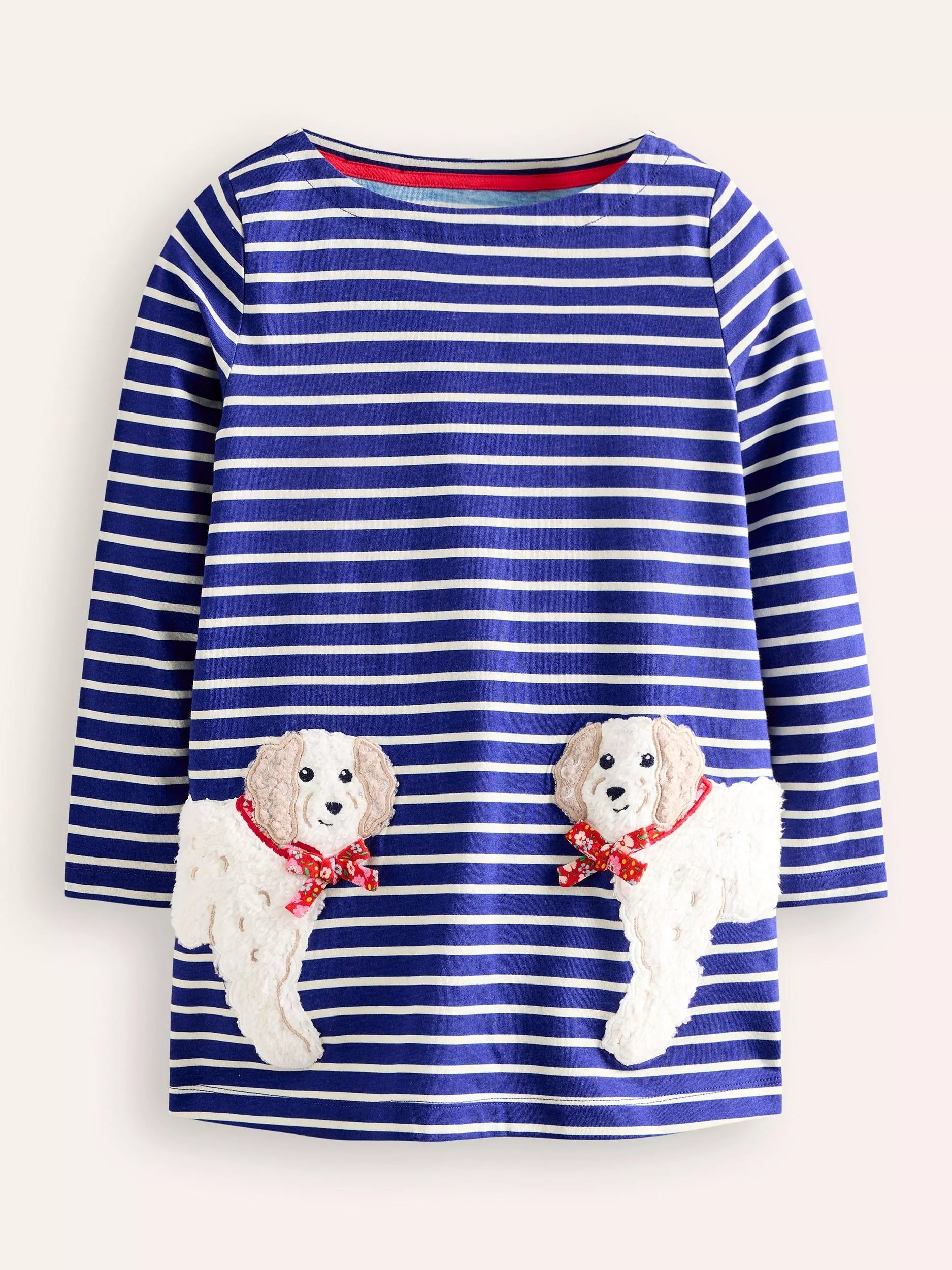 Delight your little one with this adorable Mini Boden Kids' Appliqué Dogs Tunic Top. This charming long-sleeved cotton tunic is perfect for everyday wear and playtime, combining comfort with fun, playful design.
