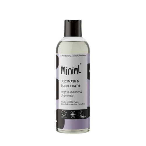 Refresh your senses with this dual-purpose Miniml wash featuring Lavender and Chamomile. This richly foaming cleanser works as a gentle body wash or transforms into foam for a relaxing bubble bath experience.