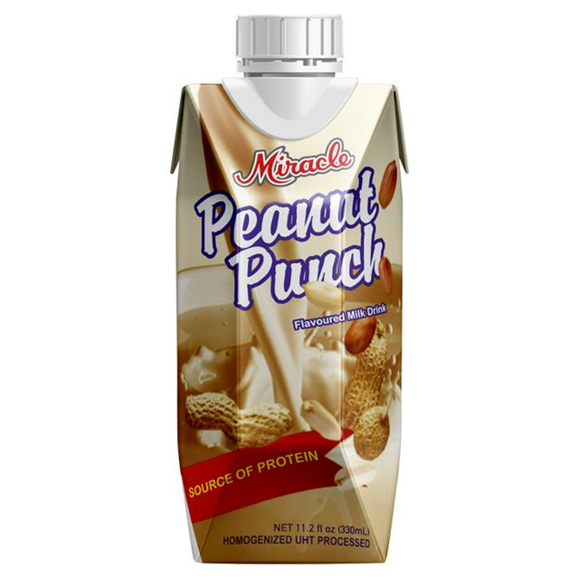 Miracle Peanut Punch Flavoured Milk Drink, available in a convenient 330ml carton, delivers a satisfying taste experience indeed. This smooth, homogenized beverage is processed using the UHT method for reliable shelf stability and offers substantial protein content. It truly supports active lifestyles and all essential daily nutritional requirements for adults.