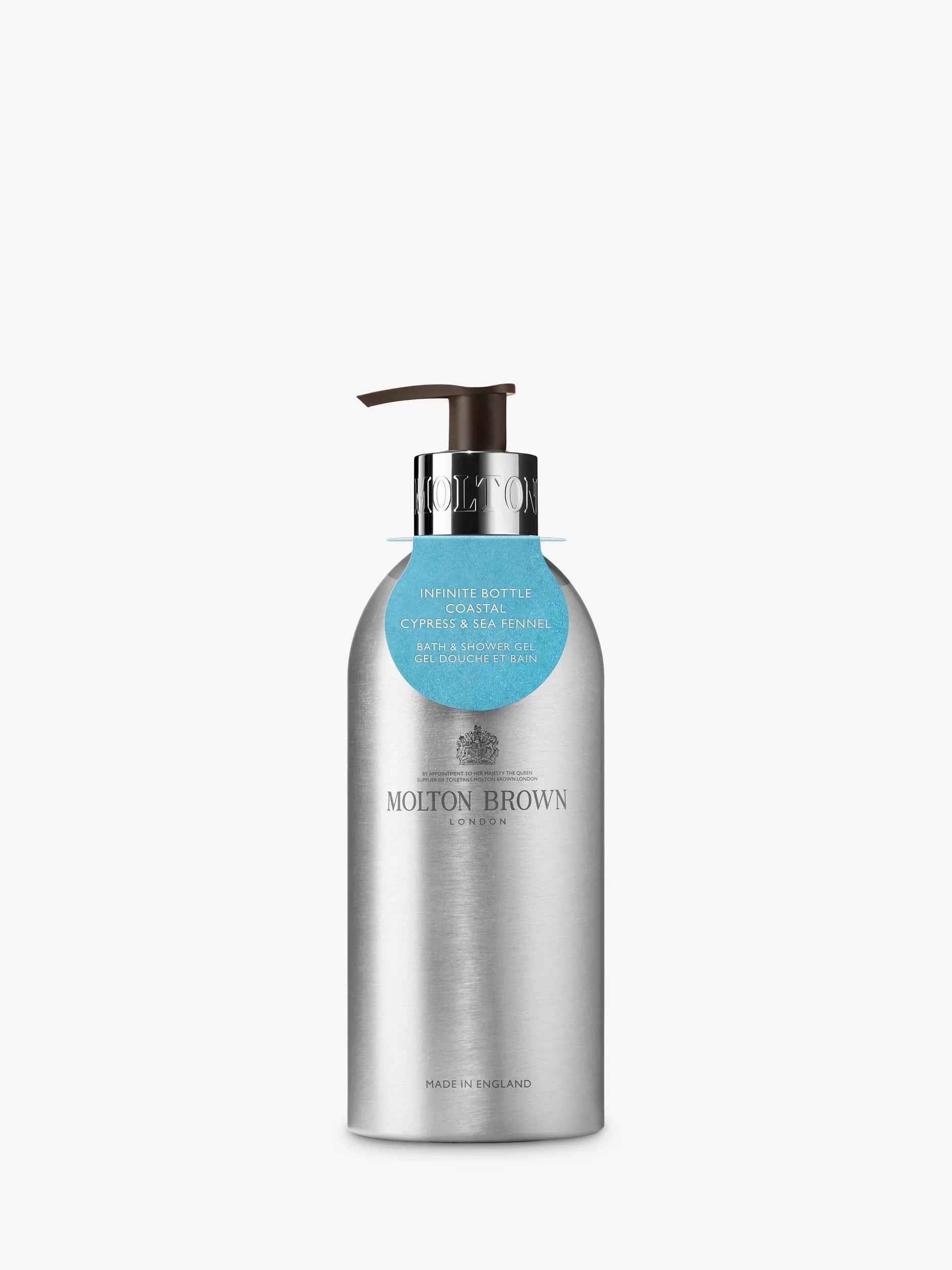 Sophisticated and sustainable, this durable, 100% recycled aluminium bottle is filled with our award-winning aromatic Bath & Shower Gel. Keep topping up with our matching Refill pouch for a more conscious bathing routine, fresh with salted cypress, cool spice and sea-soaked marine notes.