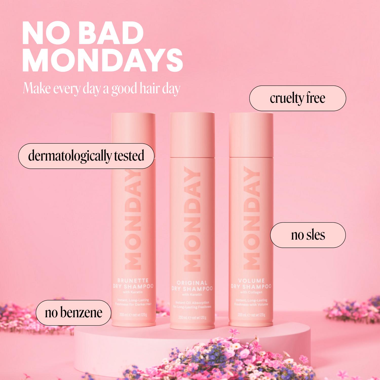 Wish you could make that just-washed feeling last longer? With a subtle gardenia scent, MONDAY Haircare’s ORIGINAL Dry Shampoo absorbs excess oil to freshen hair between washes—while nourishing Keratin helps to balance and protect. The formula is also dermatologically tested, contains 0% SLS and is free from Benzene. What’s more, MONDAY Haircare is approved as cruelty-free under the Leaping Bunny programme and is PETA-certified as a brand that does not test on animals. With MONDAY, every day can be a good hair day!