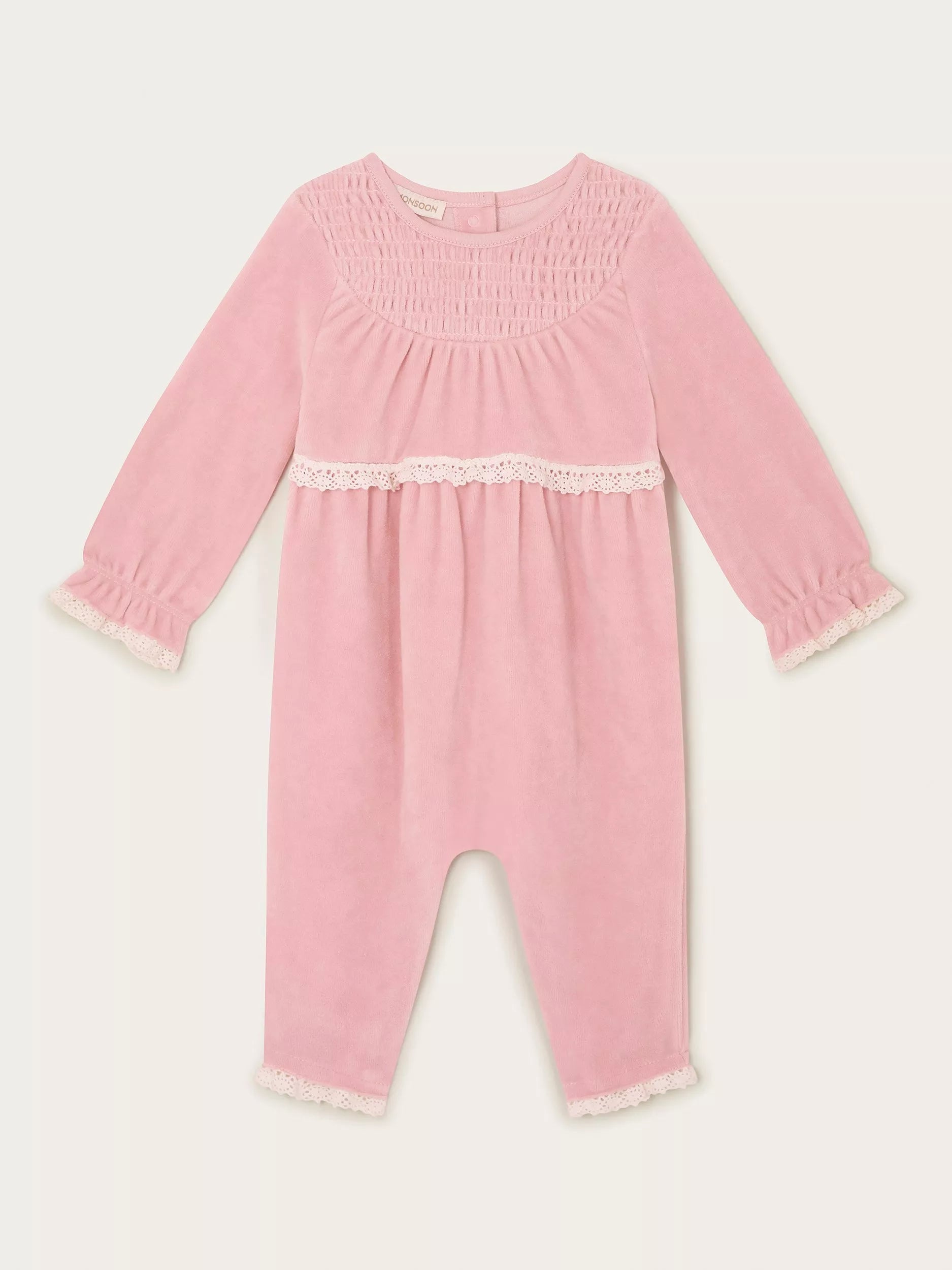 This embroidered all-in-one showcases a pretty trim. Made from super comfy cotton blend fabric.