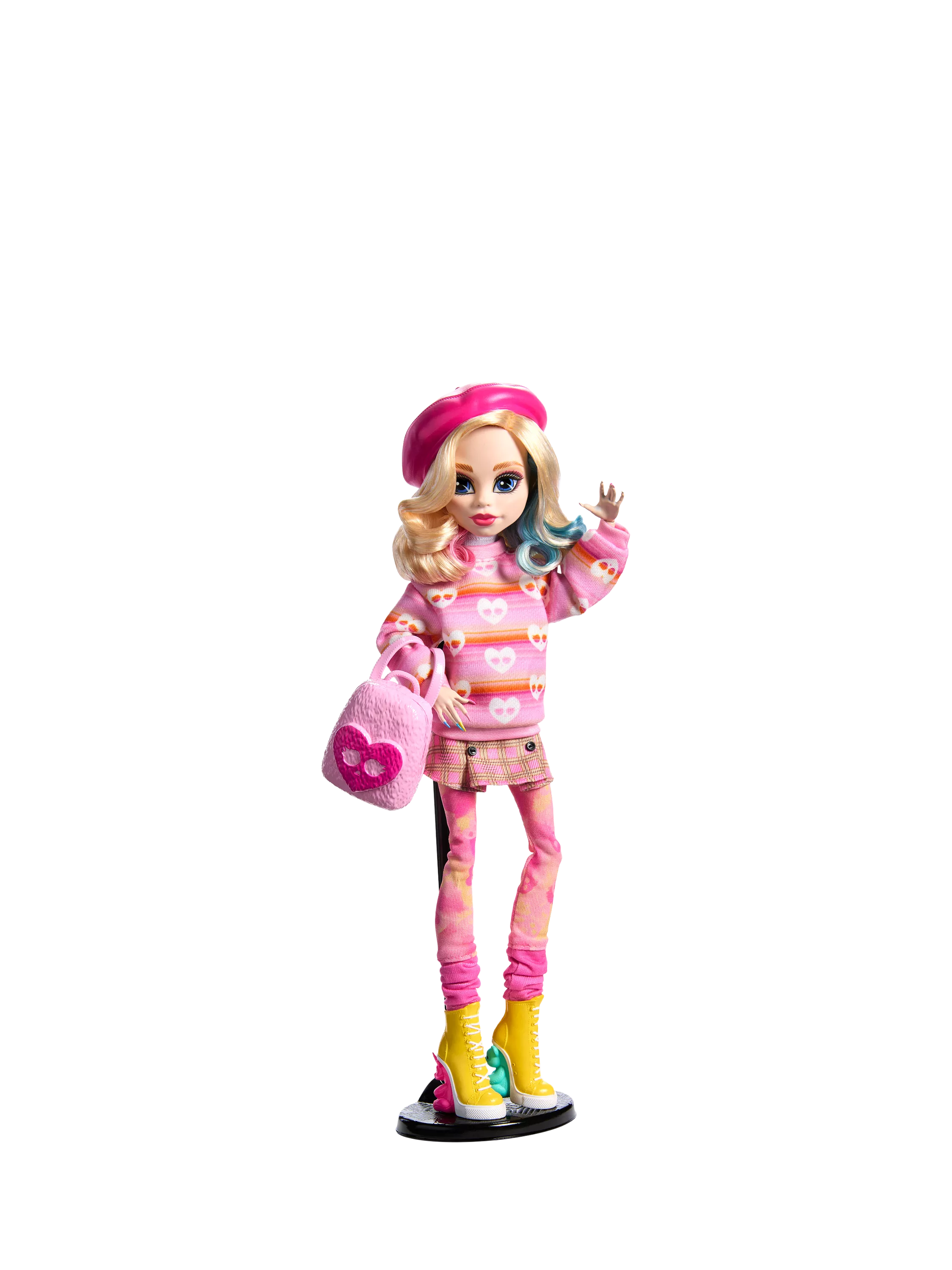 Inspired by her character's bright and colourful style, this Enid Sinclair collectible doll looks "iclawnic" in an all-pink look featuring a beret and backpack accessories. As endearing in doll form as she is on the show, Enid is ready for anything - whether it's getting the latest on school gossip or fighting off a homicidal monster!
