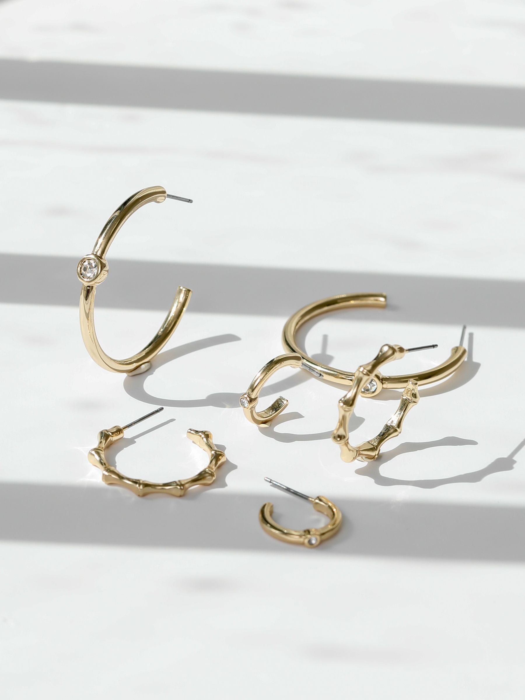 Our Mood Gold Polished & Crystal Multipack Hoop Earrings are the perfect trio of romance and style. Featuring a polished finish, each pair is accented with a crystal detail for a touch of everyday glam. Wear them solo or mix and match.