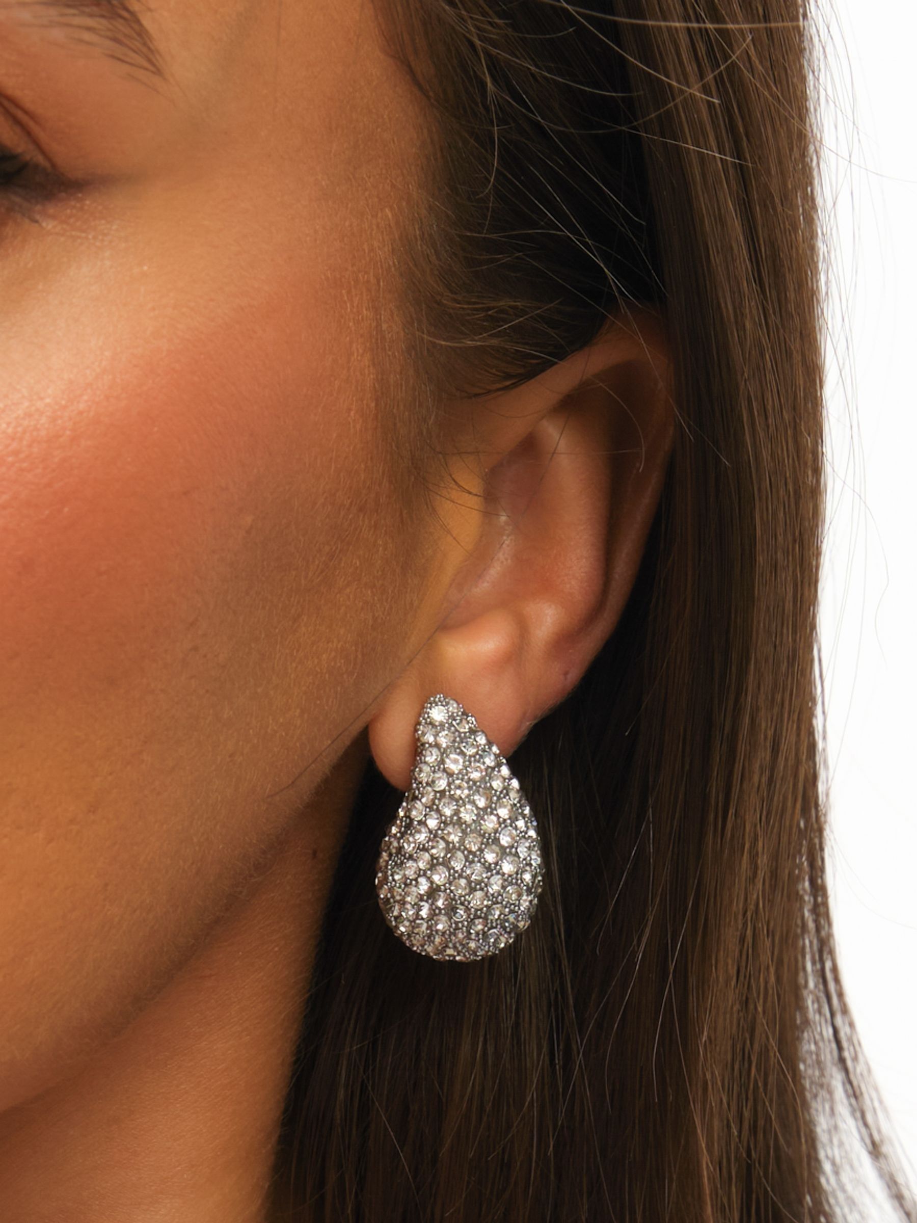 Our Mood Silver Crystal Dome Stud Earrings are the definition of modern elegance. Featuring a crystal dome these earrings add a refined sparkle to any outfit. Delicate, timeless, and effortless, perfect for day to night. Fastening: Post and Bullet Back. Width dimension: 15mm. Length dimension: 26mm. Material: Silver Plated Base Metal.