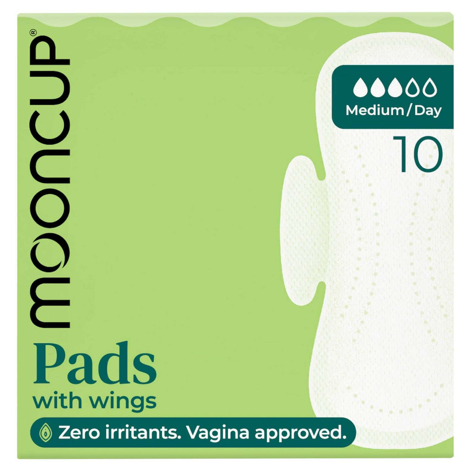 These Mooncup pads feature wings and are designed for medium absorbency, ideal for daytime use. They are clinically proven to help reduce irritation compared to standard options.