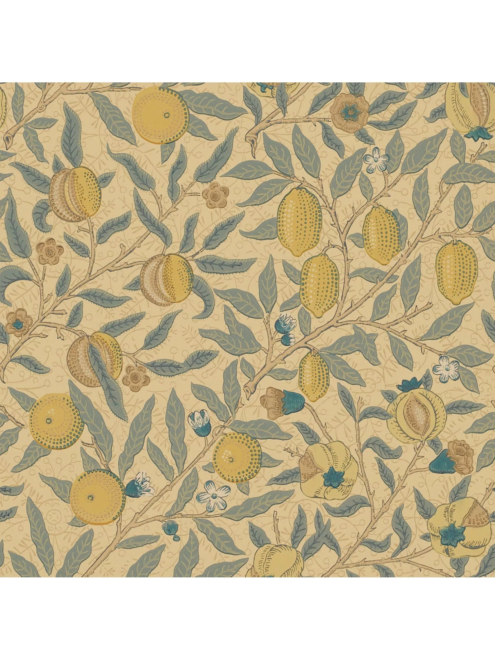 An abundance of ripened pomegranates hangs temptingly from the branches of an overflowing tree, growing amongst the abundant flora. Printed over fine branches in the background to give the design greater depth, Fruit is one of the first William Morris designs, produced in 1864, demonstrating early on its creator`s skill as a pattern maker.