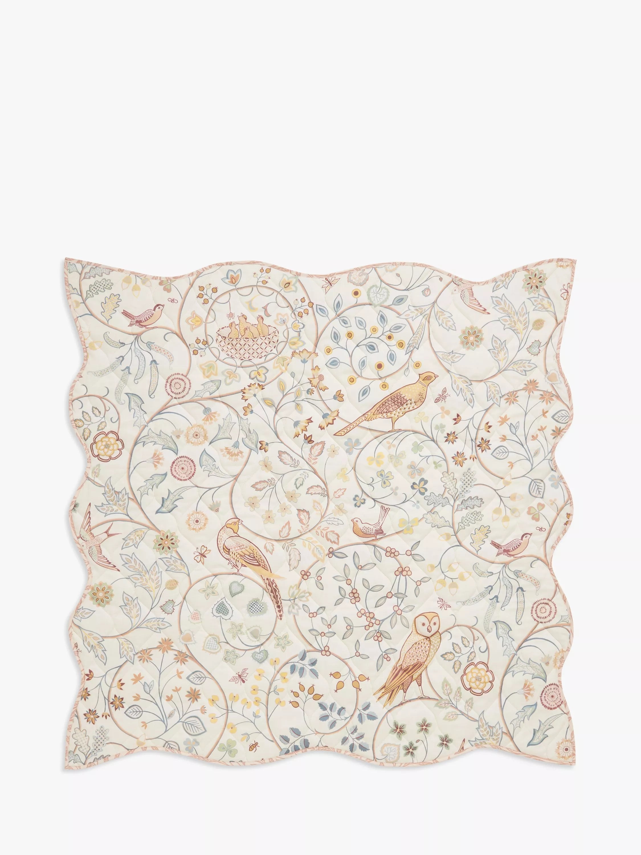 The perfect finishing touch for any space, this quilt from Morris & Co. features their eye-catching Middlemore print. The reversible style has scalloped edges that add to the appeal.