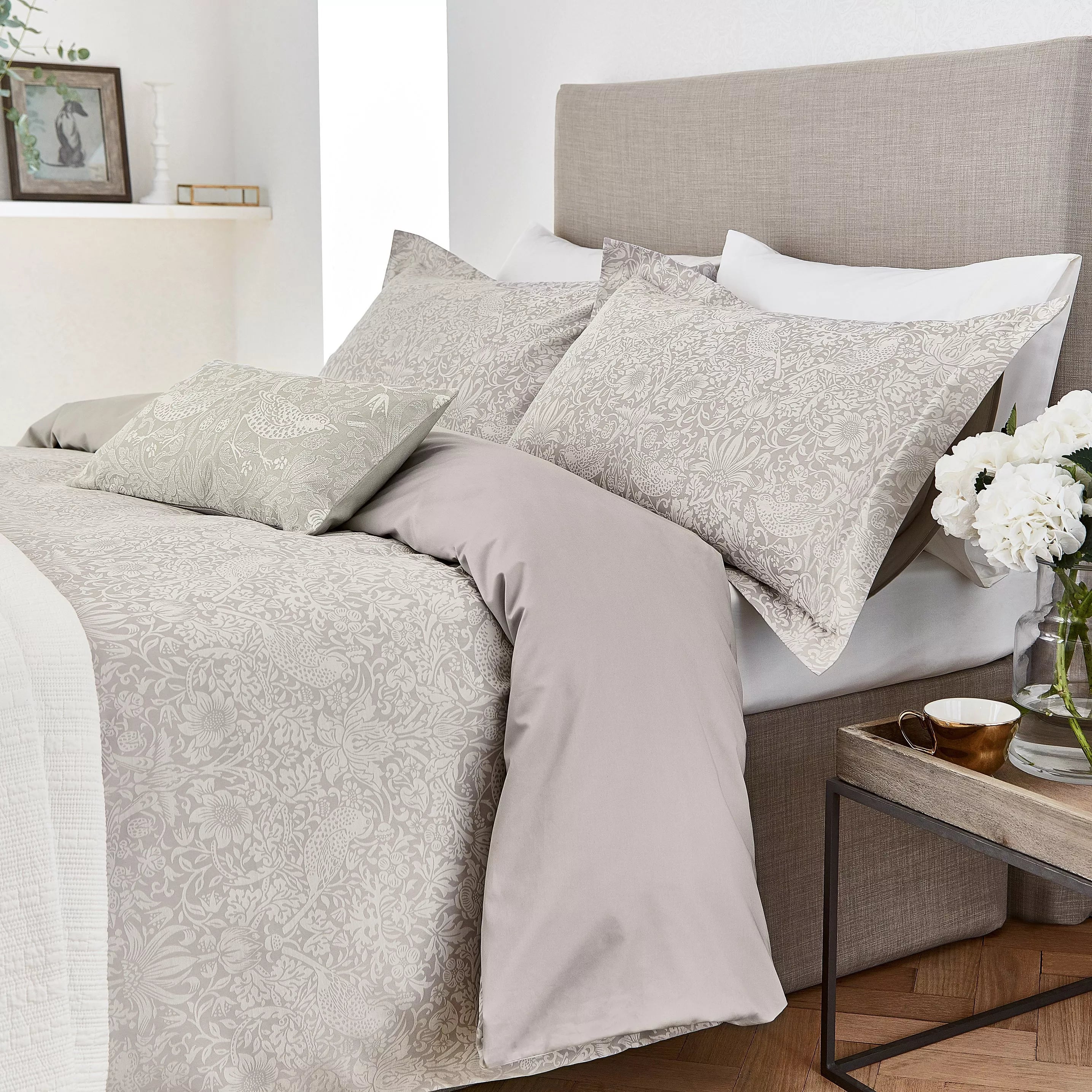 Originally a fabric designed by William Morris in 1883, Pure Strawberry Thief has been re-created in a contemporary monochromatic colourway, whilst retaining the exquisite detail of the multi-coloured original. The range includes a Jacquard duvet cover and Oxford pillowcase, woven in a fine 300 thread count cotton and reversing to a coordinating, plain 200 thread count percale.