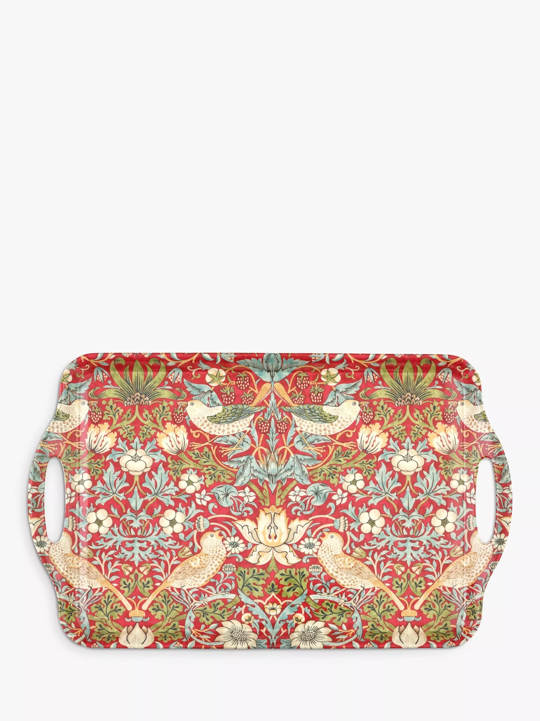 Made of lightweight melamine, this long tray with handles is inspired by a Morris & Co. heritage print, Strawberry Thief, from the archive of Arts and Crafts artist and designer William Morris.