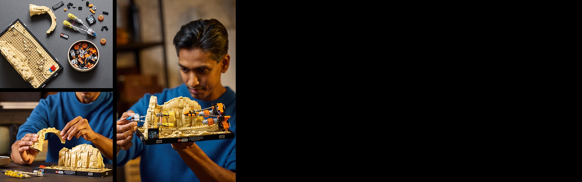 Freeze-frame a moment from the thrilling Mos Espa Podrace with this LEGO® Star Wars™ Diorama (75380) buildable model kit for adults. This collectible building set invites you to channel the force, as Anakin Skywalker did in the Star Wars: The Phantom Menace adventure, to create a LEGO brick-built snapshot of his Podracer powering through Arch Canyon in hot pursuit of his racing rival Sebulba.