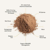 Rosehip Powder, Maca Powder, Organic Lucuma Powder, Calcium Lactate, Strawberry Powder, Montmorency Cherry Powder, Papaya Fruit Powder, Guava Powder, Magnesium Glycinate, Slippery Elm Bark Powder, Calcium Ascorbate Powder, Lemon Balm Extract, Pomegranate Seed Extract, Organic KSM-66® Ashwagandha, Ahiflower®, Potassium Chloride, Bamboo Extract, Red Clover Extract, Cranberry Extract, Zinc Picolinate, Ferrous Bisglycinate, Nicotinamide, Vita-algae D™, Vitamin D3 Preparation, Calcium D-Pantothenate, Vitamin A, Vitamin K2 MK-7, Pyridoxal 5-Phosphate, Chromium Picolinate, Thiamine Hydrochloride, Riboflavin, Copper Citrate, Folic Acid, Potassium Iodide.