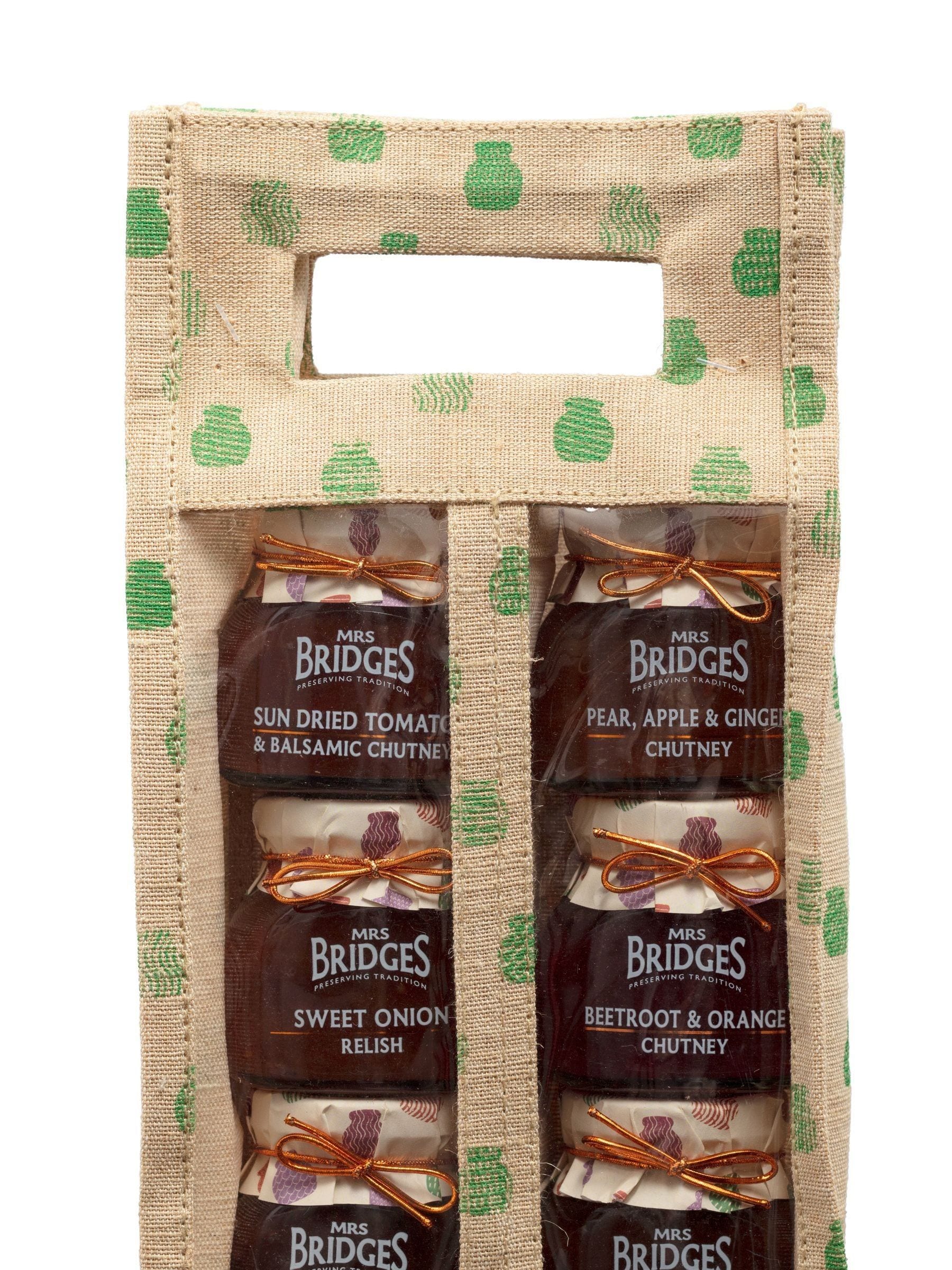 This is a perfect gift for savoury lovers, find old favourites and discover new flavours in this perfect tasting set housed in a high-quality, reusable juco bag. This gift contains 100g sun-dried tomato and balsamic chutney, 100g sweet onion relish,100g ploughman's chutney, 100g beetroot and orange chutney, 100g pear, apple and ginger chutney, 100g caramelised onion and garlic chutney.