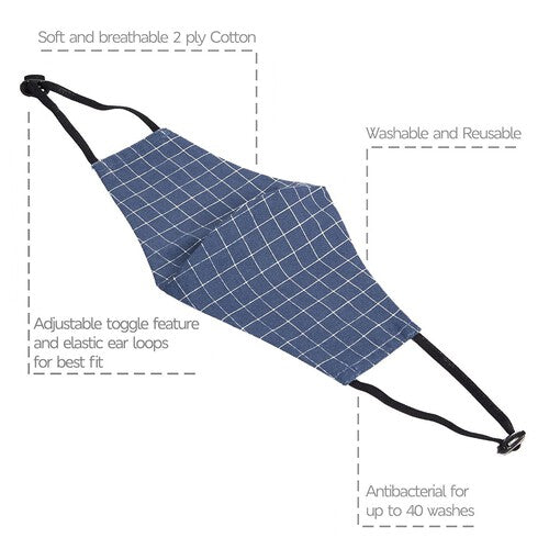 Read MoreWith elasticised straps and adjustable toggles at either side, these face coverings provide a secure fit over your mouth and nose. Crafted from breathable 2-ply cotton for durability and breathability. Washable and reusable design with an antibacterial finish. Pack of five features assorted colours and designs, including checks and stripes. Masks should fit snuggly and comfortably across your face, covering your nose and mouth and stretched over your chin. Care should be taken on removal of masks after use. These are not medical grade face masks.