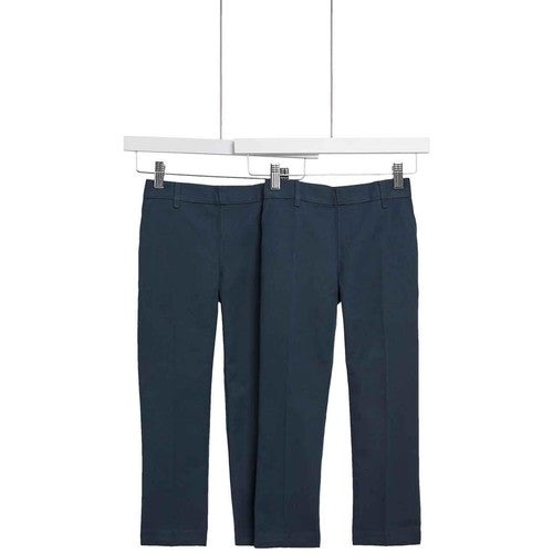 Read MoreThese school trousers are made with crease resistant fabric to keep them looking smart all day. The two-pack is crafted in a regular fit, with an adjustable waist and hem for comfort and to allow for growth. A durable Stain & Weatherproof finish repels water and marks.