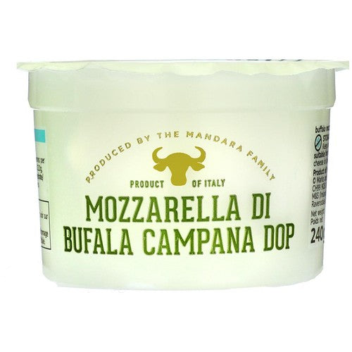 M&S Buffalo Mozzarella is expertly sourced and crafted following the tradition of the Mandara Family. This fresh cheese offers a rich, milky taste profile with a delicate sweetness balanced by a soft, creamy texture, making it excellent for various culinary uses. It is an authentic Italian product ready to elevate salads or pizza toppings.