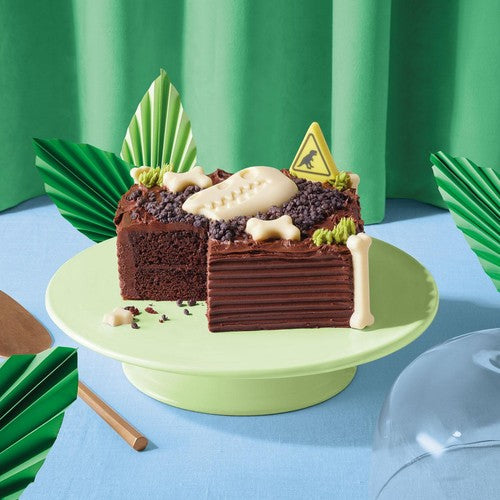 This themed chocolate sponge forms a fun dinosaur cake centerpiece for your special celebrations. It is layered, filled, and covered generously with smooth, rich chocolate buttercream frosting for deep flavour.