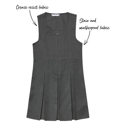 Read MoreThis stylish school pinafore features a front zip with a cute butterfly puller, making it easy for kids to dress and undress. The fabric has a Stain and Weatherproof finish which repels water and stains and Crease Resistant material helps creases fall out easily. With Permanent Pleat technology to make sure pleats stay put wash after wash.