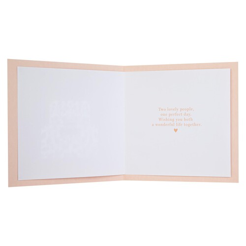 Message inside reads: Two lovely people, one perfect day. Wishing you both a wonderful life together