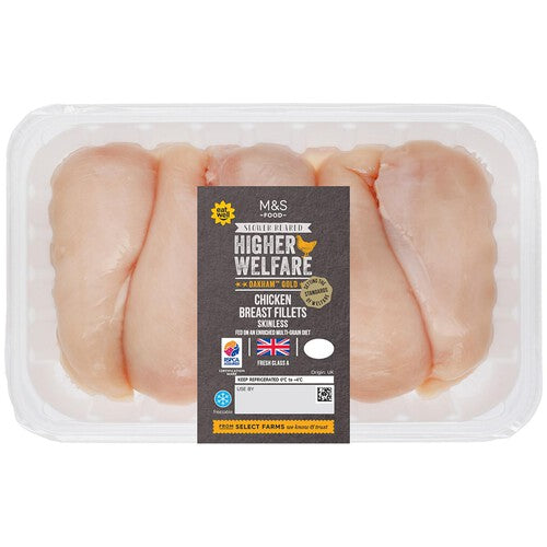 M&S Oakham Gold Chicken Breast Fillets are sourced from naturally slower reared British chickens. These fillets adhere to leading welfare standards, reflecting a commitment to quality and responsible sourcing practices.