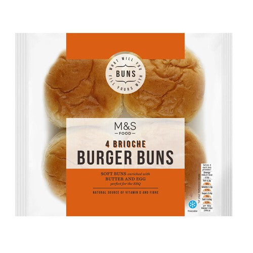 These M&S brioche burger buns offer a light and buttery texture ideal for elevating your gourmet burgers. They are richly flavoured and finished with a delicate egg yolk glaze for an appealing appearance.