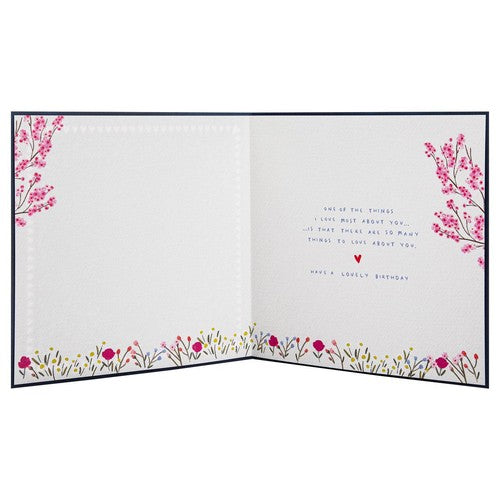 Message Inside Reads: One of the things I love the most about you… is that there are so many things to love about you. Have a lovely birthday