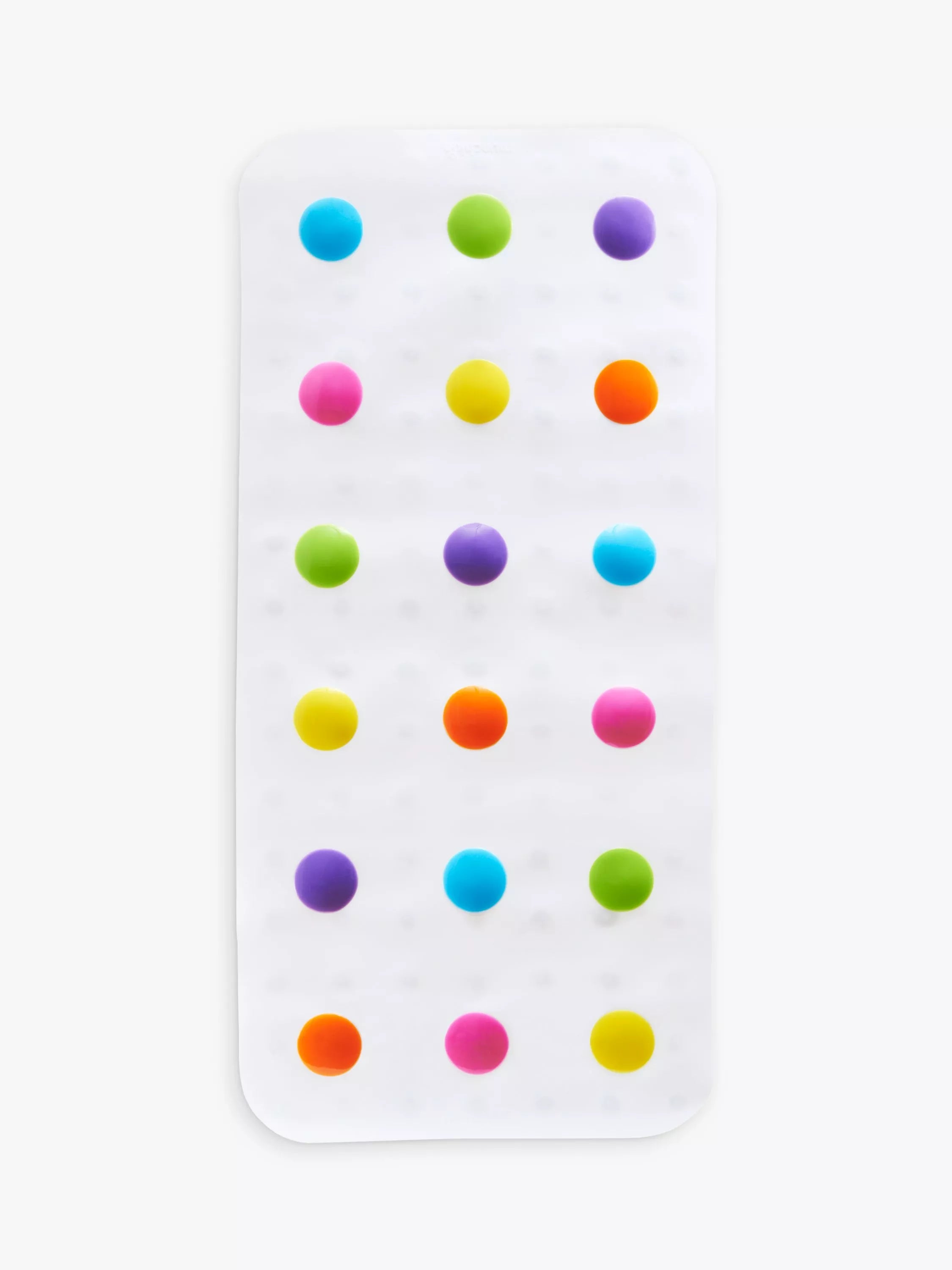 Get a grip (in the bath) with this dandy dots non-slip skid-resistant baby and toddler bath mat.