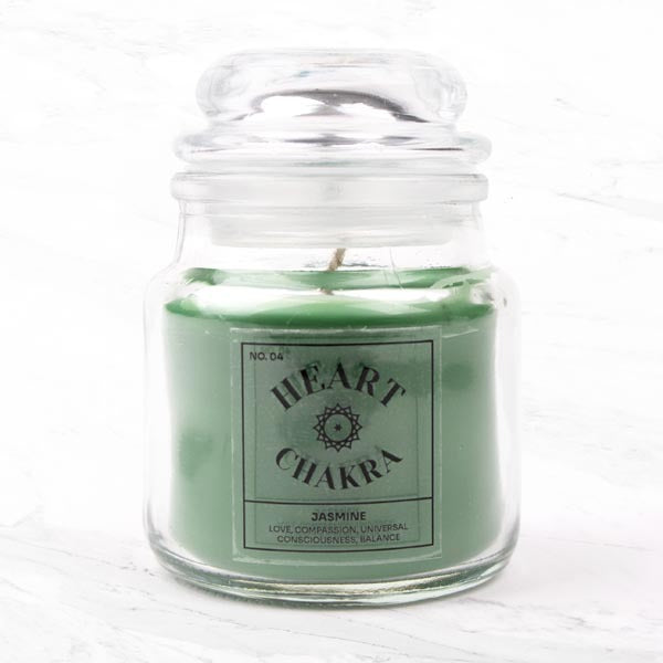 heart chakra green candle the centre of all the chakras the heart chakra is the link between the lower three and higher three chakras known for love compassion consciousness and balance the heart chakra candle is scented with jasmine which is known to help alleviate stress anxiety and help the body unwind also aiding in relationship problems heart and chest problems and respiratory features 100 vegan planet friendly products great gift soy wax candles and premium oils with cotton wick burning time 15 hours reusable glass container after the candle has been completely used the cute jar can be used as a decorative storage container for safety pins or keys