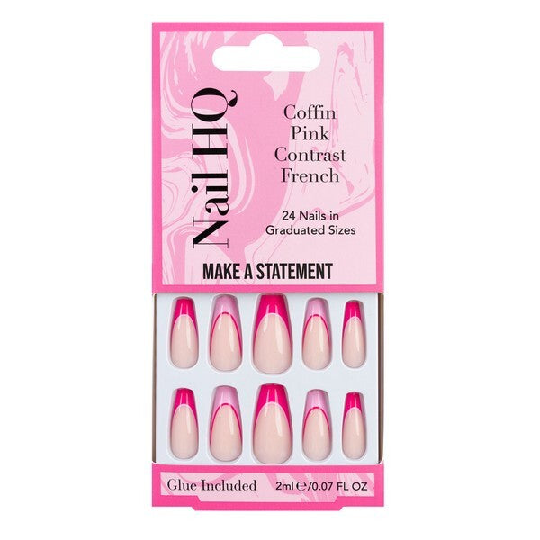 Add a touch of fun and colour to your nails with Nail HQ Coffin Pink Contrast French Nails.