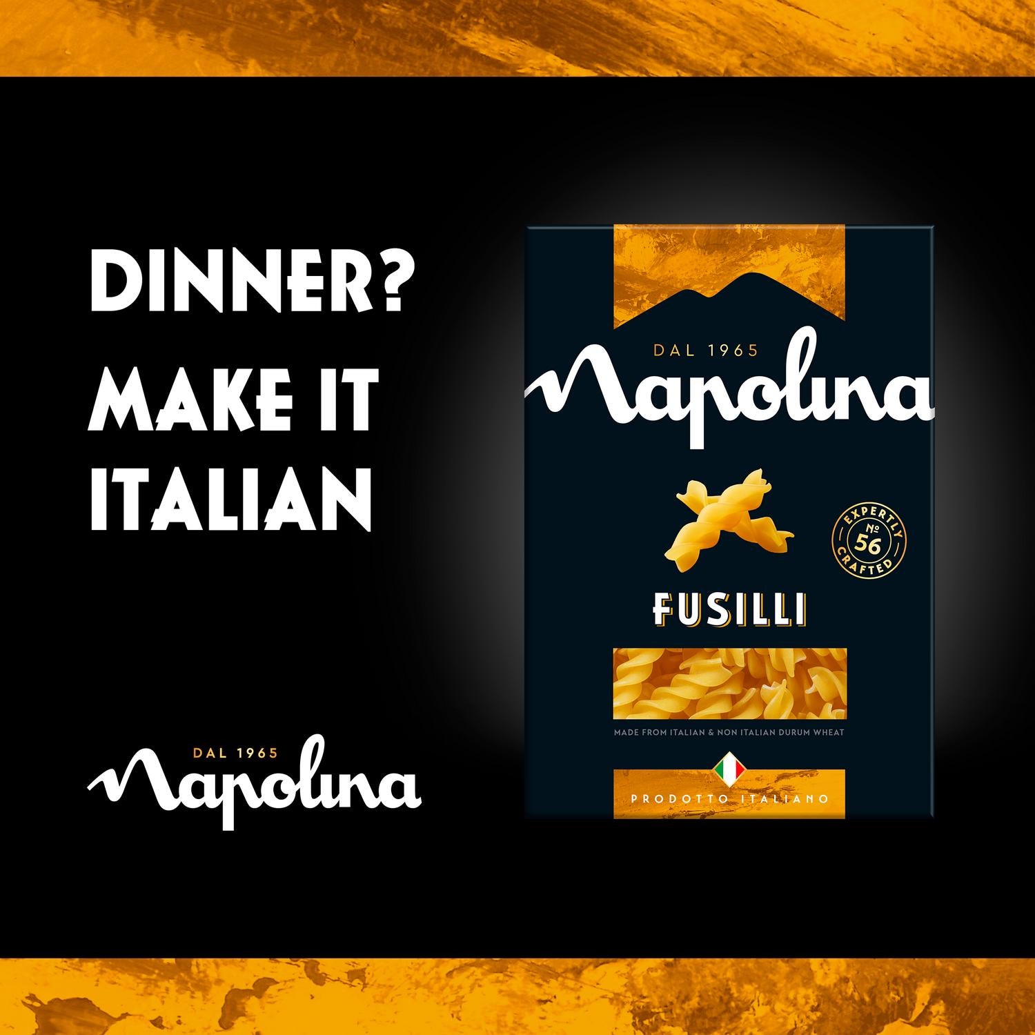 Napolina Fusilli Pasta No 56 embodies expertise rooted in Naples since 1965. This quality pasta is expertly crafted using a unique die-cut process to achieve the ideal texture. It is specifically designed to hold and complement the ingredients and sauces stirred through your dish.