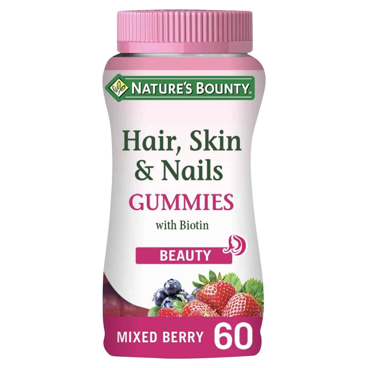 Nature's Bounty® Hair, Skin & Nails Gummies support your natural beauty regime. These delicious gummies provide key nutrients for healthy skin, nails & hair¹ including zinc, vitamins C & E, biotin & collagen. Delicious mixed berry flavour. ¹Zinc contributes to the maintenance of normal skin, nails and hair. Look good & feel great with Nature's Bounty®