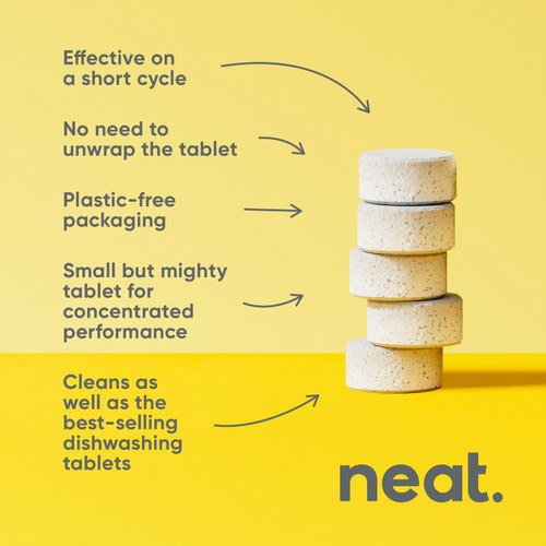 Achieve spotless results with minimal effort using Neat All-in-One Dishwasher Tablets. These convenient tablets incorporate powerful Triple Action Cleaning and Fast-Dissolving Technology for guaranteed clean dishes.