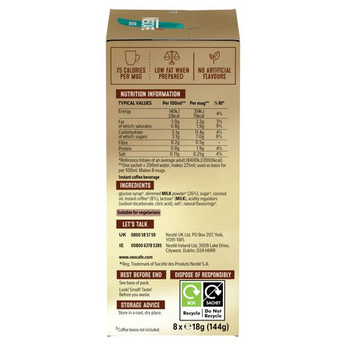 Through our Nescafé® & milk plans, we work closely with farmers to develop responsible practices to produce high quality coffee and milk that is used to make this delicious coffee.