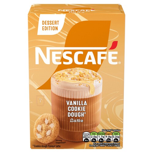 Enjoy the indulgent taste of Nescafe Vanilla Cookie Dough Latte, an instant coffee blend designed for flavour. This rich, creamy beverage features sweet notes inspired by cookie dough. Each preparation supports ethical farming because it uses 100% responsibly sourced coffee beans.