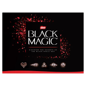 FeaturesDiscover the secret of the Black Magic Dark Chocolate Box. Contains a selection of dark chocolates in a variety of caramels, nuts and fruit creams, wrapped in dark chocolate. Contains no artificial colours, flavours or preservatives. Black Magic is part of the Nestle Cocoa Plan, which works with the Rainforest Alliance to ensure a better future for cocoa farmers and even better chocolate for you.