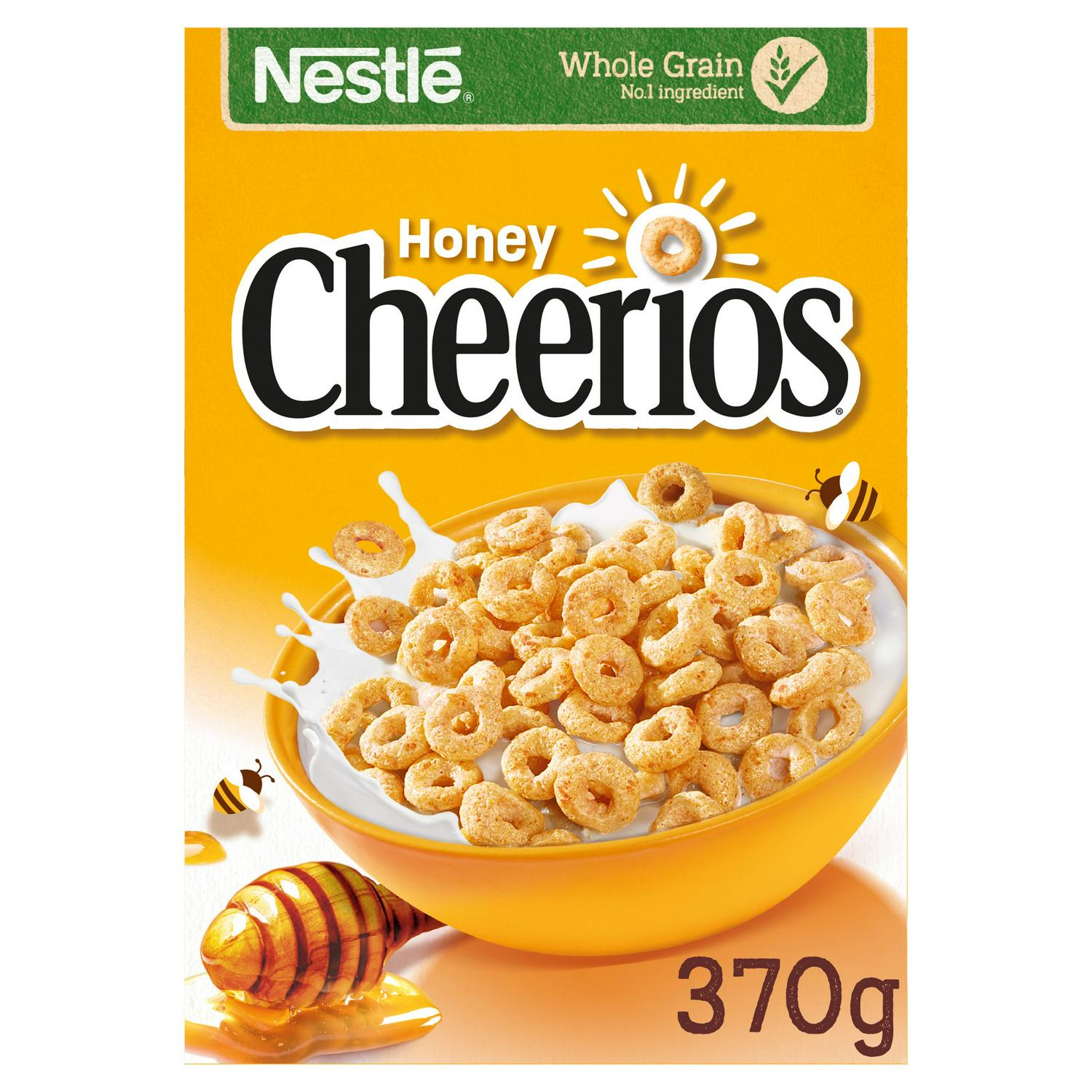Nestle Cheerios Honey Cereal offers a delicious way to start the day, featuring sweetened Os made from a mixed whole grain base. This 370g pack provides the classic taste of real honey fortified with essential nutrients. It is designed as a convenient breakfast option for the whole family.