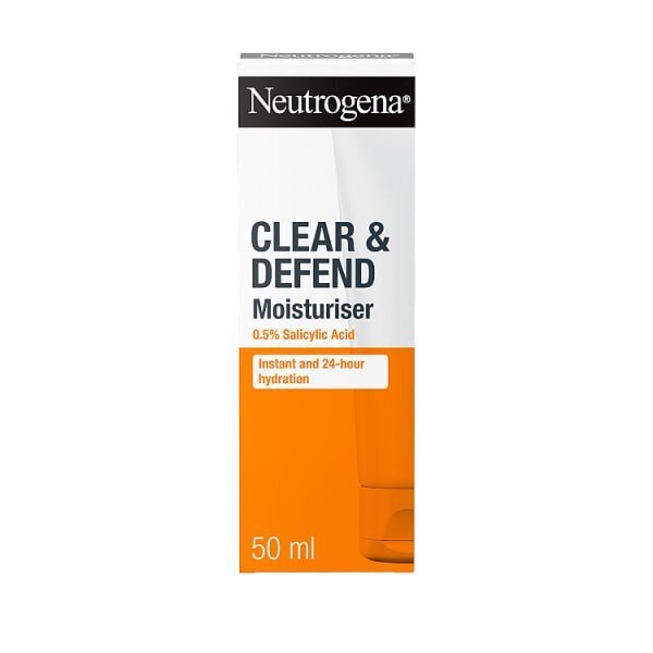 neutrogena clear defend moisturiser with purifying salicylic acid this oilfree moisturiser provides 24 hour hydration without clogging pores it is also clinically proven to help prevent spots with aloe vera chamomile this formula fades spot marks respecting the skins natural balance
