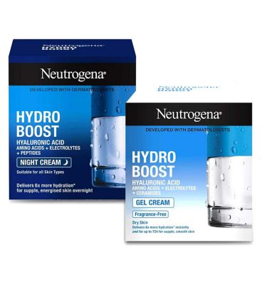 This Neutrogena Hydro Boost bundle pairs a rejuvenating Night Cream with an intense Gel Cream for complete hydration support. Formulated with dermatologists, this duo leverages key ingredients like Hyaluronic Acid, Amino Acids, and Ceramides to deeply replenish skin moisture levels. It is designed to work effectively day and night, leaving skin feeling notably supple and smooth.
