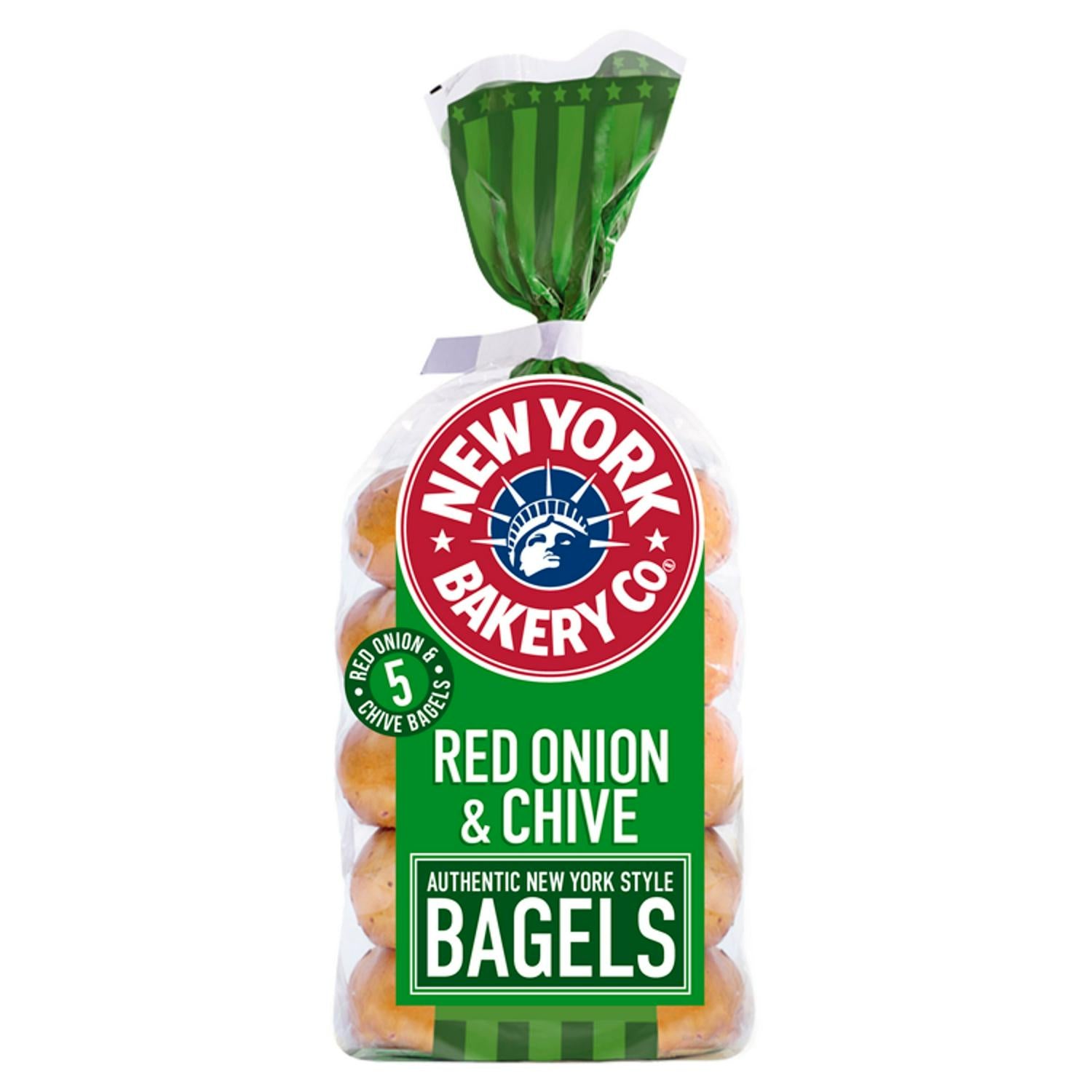 These New York Bakery Co. bagels feature the distinctive flavour of red onion and chive, offering a satisfying savoury option. They are carefully boiled and stone baked to achieve the soft and chewy texture associated with authentic New York style bagels. This convenient pack contains five ready-to-eat portions ready for toasting or eating fresh.
