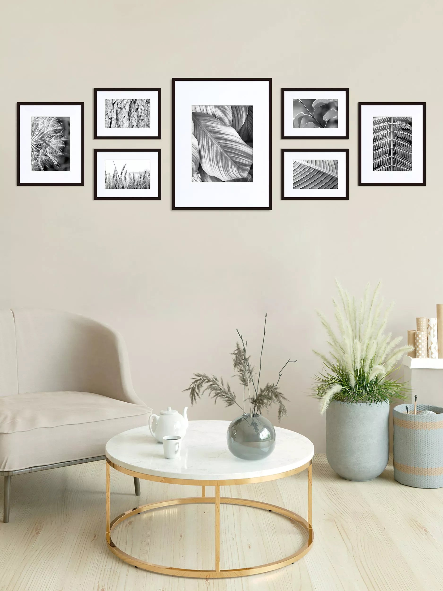 The gallery set comes with layout templates and instructions to help you create a stylish and visually balanced display for your wall space.
