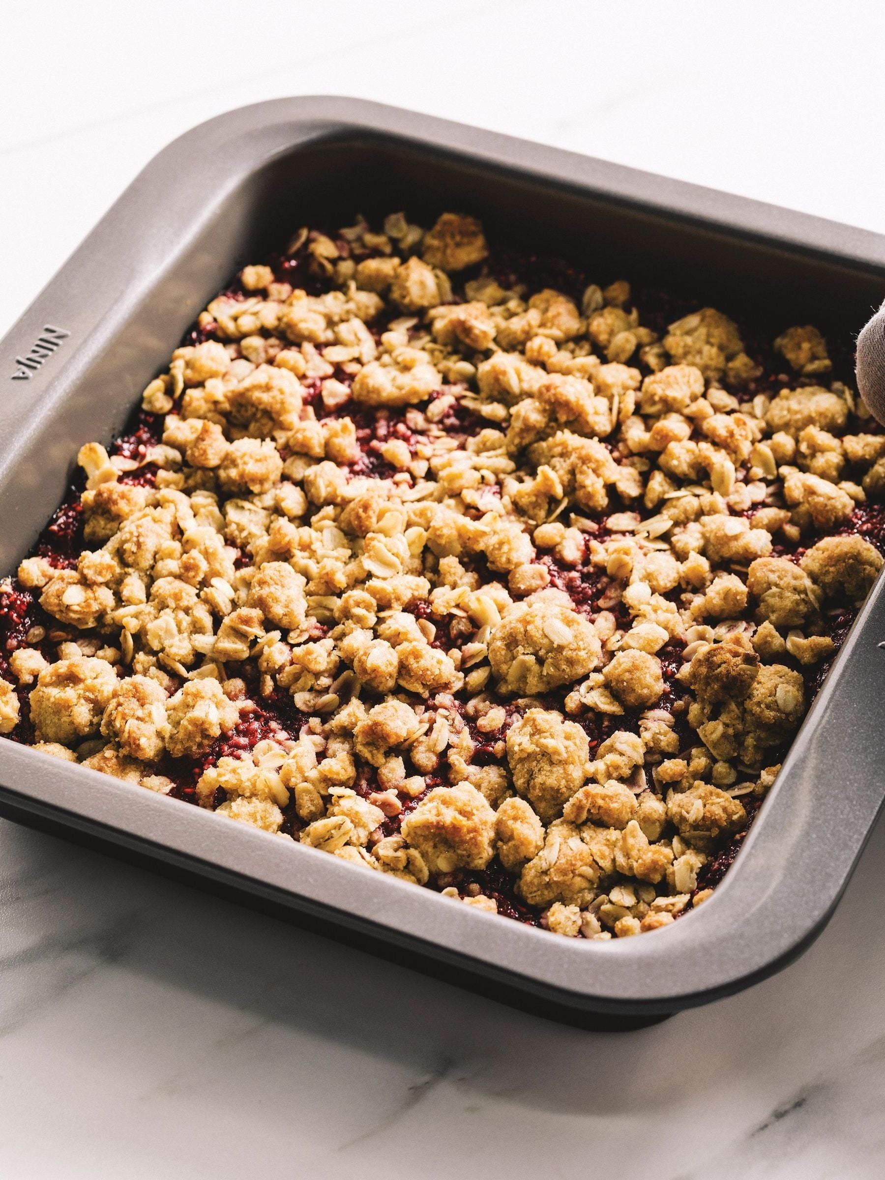 The ZEROSTICK bakeware that easily releases food and wipes clean. The perfect tin for chocolate brownies, traybakes and square cakes. Engineered so food won’t stick Ninja’s non-stick coating is engineered to consistently release food, so your cakes easily glide out of the tin. Unlike some traditional non-stick bakeware, which may quickly lose its effectiveness at releasing food, ZEROSTICK bakeware is designed to deliver, every time. Perfect results, every time The premium thick construction uniformly distributes heat to ensure your creations are perfectly baked, with even browning. Easy to use Oven safe to 260°C, it’s high-heat friendly and resists warping in the oven. Wide, ergonomic rims are easy to handle with oven gloves. Deep walls eliminate spills and protect your food as it’s removed from the oven. Durable & long lasting Expertly crafted from heavy-duty aluminised steel to minimise rusting and staining. Enjoy a free 10-year replacement guarantee, including the non-stick coating. (Upon registration with Ninja, when used as directed in the use and care guide. ) Easy to clean When you’ve finished cooking, simply pop it in the dishwasher. Designed for easy cleaning, the rounded corners means it also easily wipes clean.