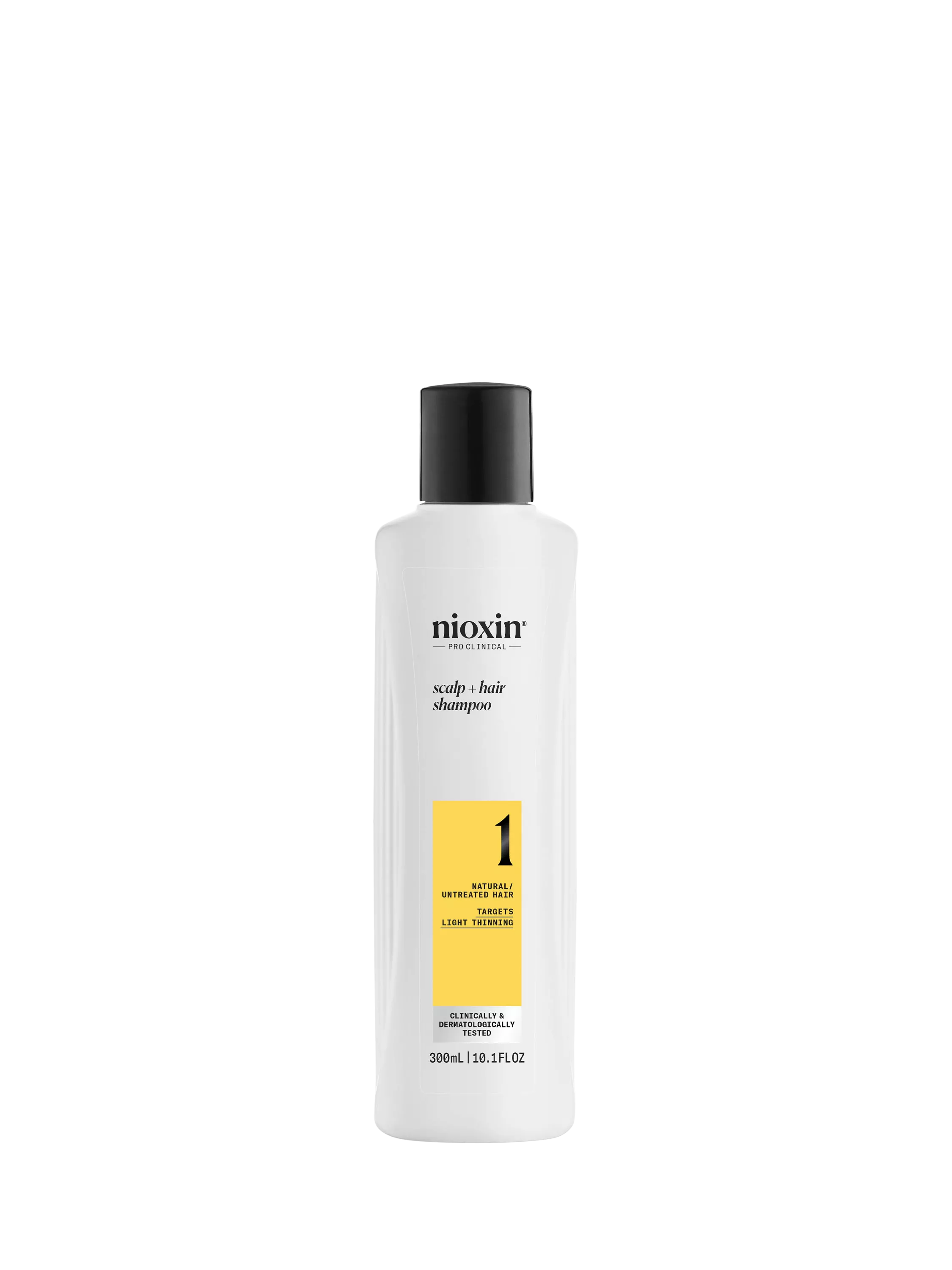 Nioxin System 1 Scalp + Hair Shampoo - Hair Thickening Shampoo for NATURAL hair with LIGHT thinning is clinically and dermatologically tested, this shampoo nourishes and gently cleanses your hair to prevent against follicle-clogging sebum, resulting in thicker, fuller hair.