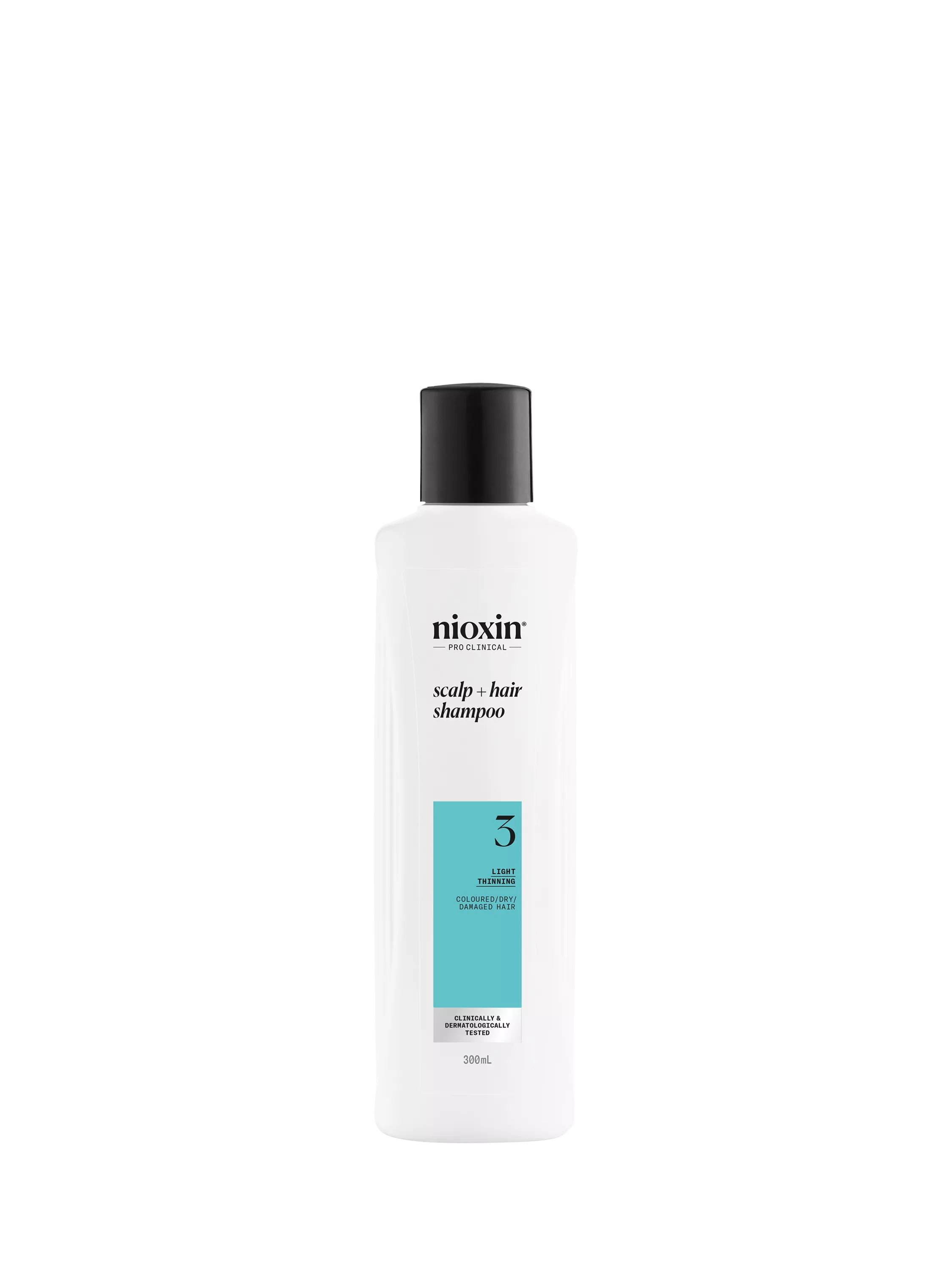 Nioxin System 3 Scalp + Hair Shampoo - Hair Thickening Shampoo for COLOURED, DRY & DAMAGED hair with LIGHT thinning is clinically and dermatologically tested, this shampoo nourishes and gently cleanses your hair to prevent against follicle-clogging sebum, resulting in thicker, fuller hair.