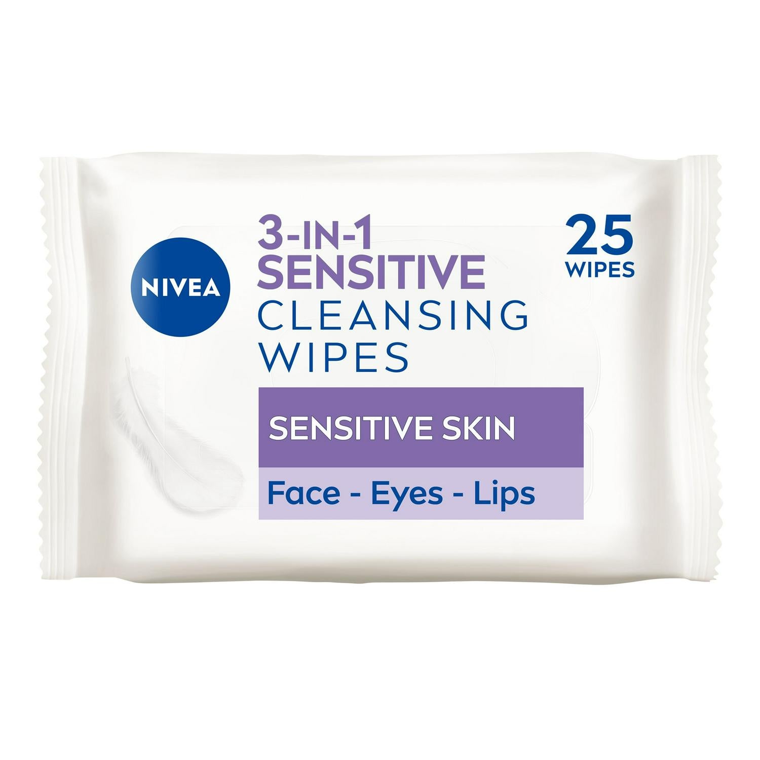 The 3 in 1 Sensitive Cleansing Wipes are especially developed to effectively cleanse while being gentle to your skin. They remove waterproof makeup & mascara and all traces of impurities. Thanks to the SkinGentle Complex with Pro-Vitamin B5 & Hydramine, the 100% plant-based wipes are even suitable for sensitive skin. For a simple, effective and gentle experience that leaves your skin healthy & beautiful looking even when time is of the essence: NIVEA 3-in-1 Sensitive Cleansing Wipes 25s.