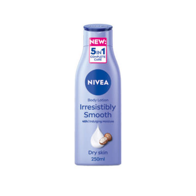 Product InformationTransform your dry skin with the NIVEA Irresistibly Smooth Body Lotion. Providing 5in1 Complete Care: 1. 48h Deep Moisture 2. Smooth skin feel 3. Fast absorbing 4. Indulging Care 5. Healthy looking skin Enriched with a combination of caring ingredients, including NIVEA's Deep Moisture Serum and naturally derived shea butter, this body lotion protects the skin and delivers deep moisture. Some areas of skin dry out quicker than others. That's why it's important to give it extra care all year round and give your skin all that it deserves. Be there for your skin with NIVEA Irresistibly Smooth Body Lotion. A market leader in the global skincare industry, we use our expertise to carefully select the highest quality ingredients and provide skin compatible, dermatologically approved products to suit various skin types and skin needs.